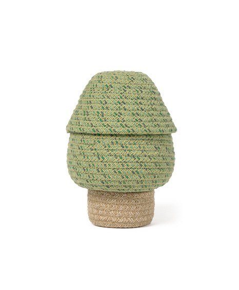 Kosz Mini Tree - mała forma, wielka inspiracja naturą! Zaproś do wnętrza odrobinę zieleni z naszym koszem Mini Tree - ręcznie wykonanym z bawełnianych sznurków wypełnionych włóknami pochodzącymi z recyklingowanych butelek PET. Choć niewielki, przyciąga uwagę żywymi odcieniami zieleni i błękitu, nawiązującymi do kolorystyki lasu.